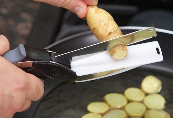 A zöldségvágó rozsdamentes, éles késének és vágódeszka funkciójának köszönhetően akár 10x gyorsabban szeletelhet, apríthat mint egy hagyományos késsel! Extra széles! Szélesre nyíló pengéjével krumplit, almát, hagymát de akár még bagettet is pillanatok alatt szeletelhet!